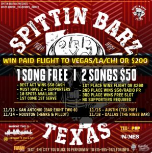 RESENTED BY:SPITTIN BARZ HOSTED BY:@chops_diggity@nicoc_28 1 song FREE🗣️🎙️ 2 songs $50🔥 DM US OR TEXT “TEXAS TOUR + THE CITY YOU WWNT TO PERFORM IN” to 815-995-5176 FOR MORE INFO 📥📥📲📲