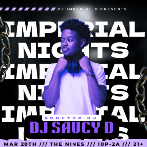 Sets by: DJ Imperial D Beautiful rooftop Amazing DJs $5 frozen drinks and $2 off menu drinks til 10pm! No cover til 10pmNo re-entry21+
