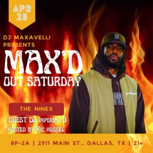 Presented by: DJ Maxavelli Guest DJ: Imperial D Hosted by: Ric Hussel (K104) Beautiful rooftop Amazing DJs No cover til 9pm No re-entry $5 frozens & $2 off menu drinks til 10pm 21+