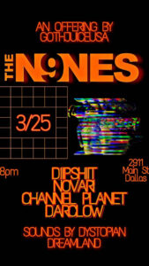 Presented by:Gothjuiceusa Live performances:DipshitsNovariChannel PlanetDarclow Sounds by:Dystopian Dreamland 21+ | Doors at 8pm | $10 suggested