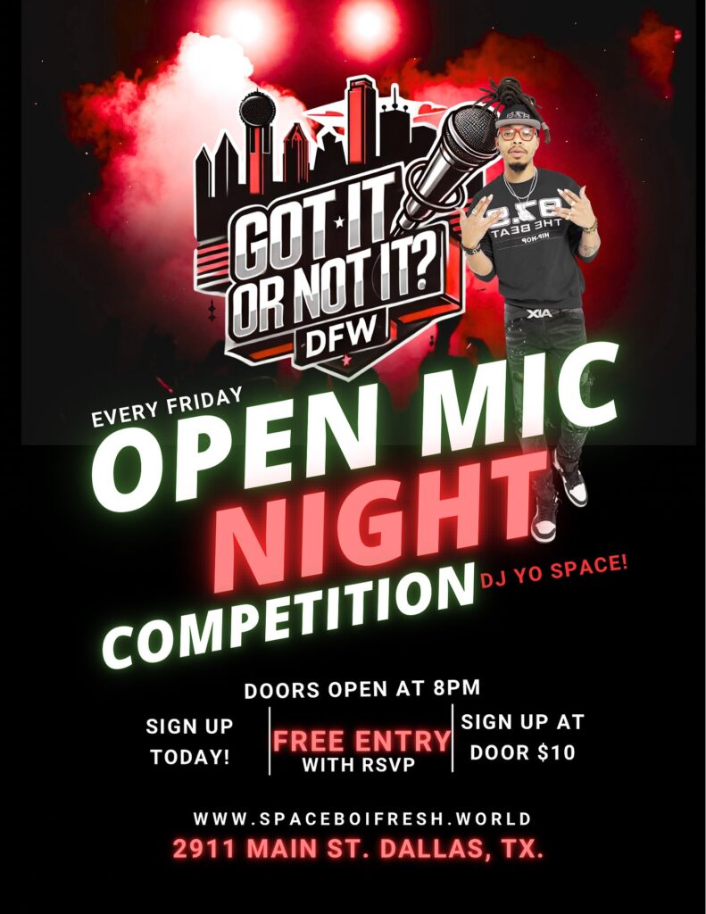 Spaceboifresh (97.9 The Beat) has teamed up with @gotitornotitdfw for a new must-see open mic series!