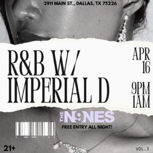 Presented by: DJ Imperial D Soundcloud Facebook Deep Ellum’s longest-running dance party!! Beautiful rooftop Amazing DJs $5 frozen drinks and $2 off menu drinks til 10pm! No cover til 10pmNo re-entry21+